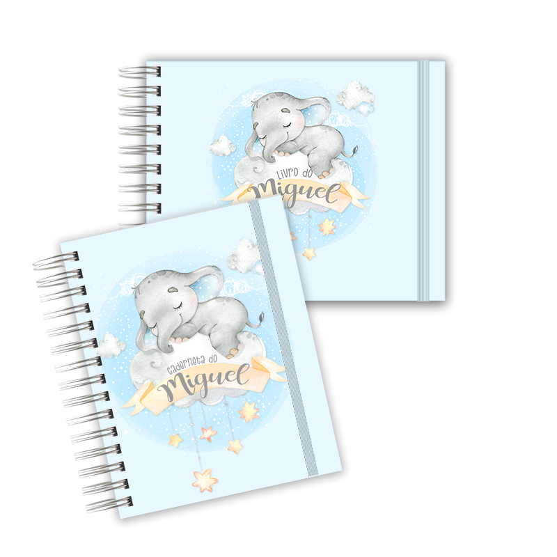 – Capa dura no tamanho 15,5×21,5 cm, com fechamento em elástico (em cor que combine com o tema) e encadernação com wire-o branco.